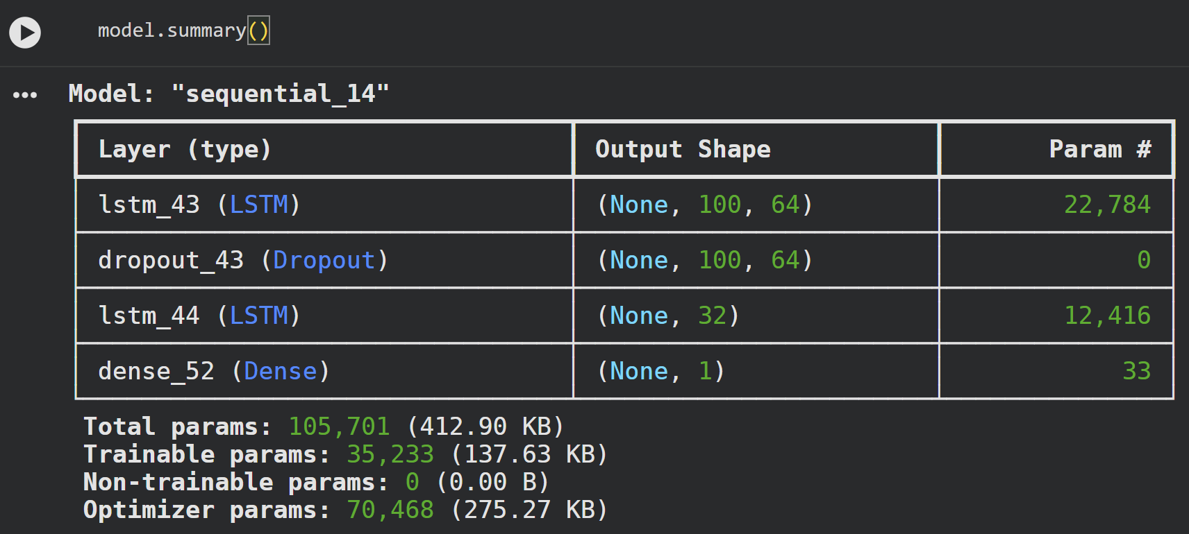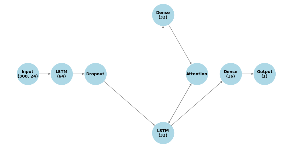 This LSTM architecture suits Remaining Useful Life prediction by matching the sequential, gradual degradation in sensor data. Stacked layers capture both short- and long-term trends, while dropout limits overfitting without adding complexity. Optional attention and dense layers highlight key time steps, enhancing signal extraction with minimal extra parameters. With few trainable parameters, the model generalizes well across assets and conditions, even with limited data. Overall, this low-complexity design offers strong performance, stability, and interpretability, making it practical for real-world prognostics.
